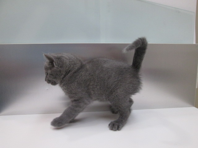 毛色はロシアンブルーの特徴でもあるシルバーの光沢がかったブルー色で綺麗です。