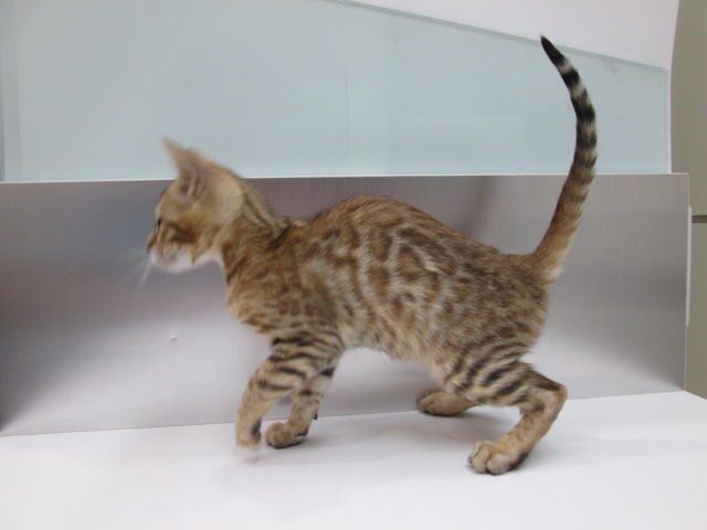 体型はベンガルの中でも小ぶりですらっとした手足や胴がとてもスタイルが良く気品が漂っています。
