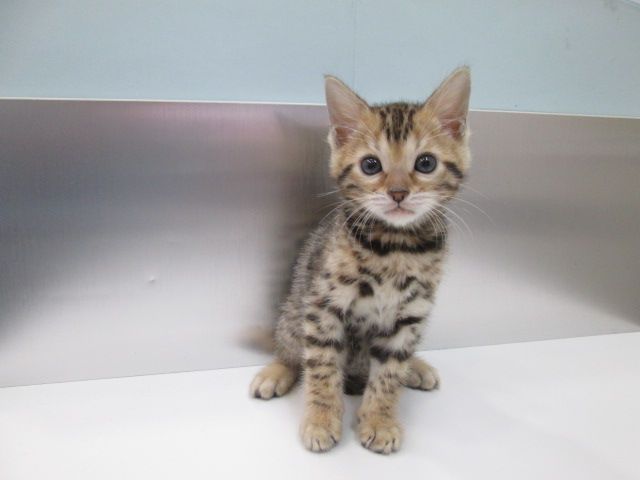 毛色は人気のブラウンスポテッドタビー色になりヒョウ柄模様のスポット柄が細かく綺麗に配色されておりこれぞベンガルという最高の毛柄をしています。
