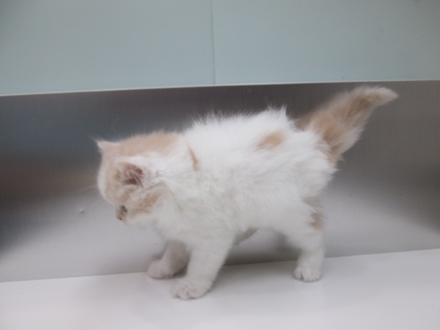 毛色はクリームタビー&ホワイトになりホワイト色の毛柄をベースに