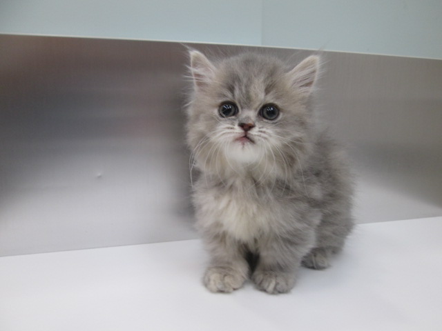 毛色は希少で人気のブルータビー色になり、全体的にシルバーグレー系のブルーの毛色に
