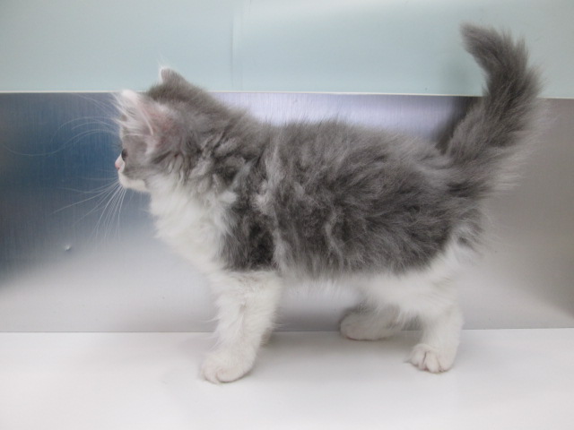 毛色は大人気で希少なブルー&ホワイトになり、全体的にブルーの毛色をベースに