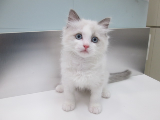 毛色は人気のブルーポイントバイカラーになり全体的に薄クリーム色の毛色をベースに
