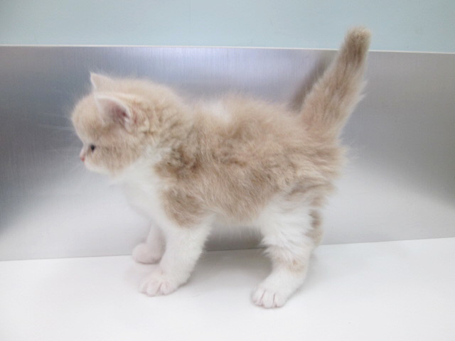 毛色は希少なクリームタビー&ホワイトになり薄めのクリーム色とホワイト色の毛柄が
