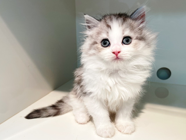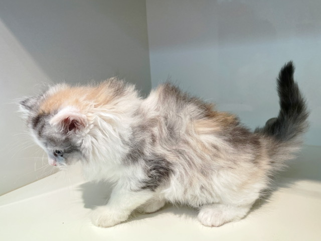 毛色は人気で希少なシルバーパッチドタビー&ホワイト(薄い三毛)になり