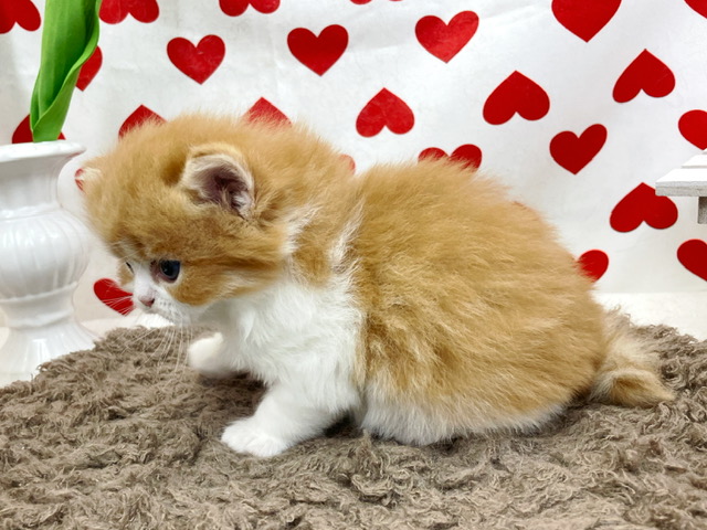 毛色はレッドタビー&ホワイトになり全体的にレッド色をベースに