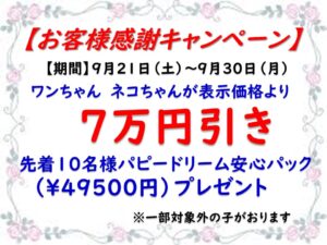 この子は通常価格から7万円引きで