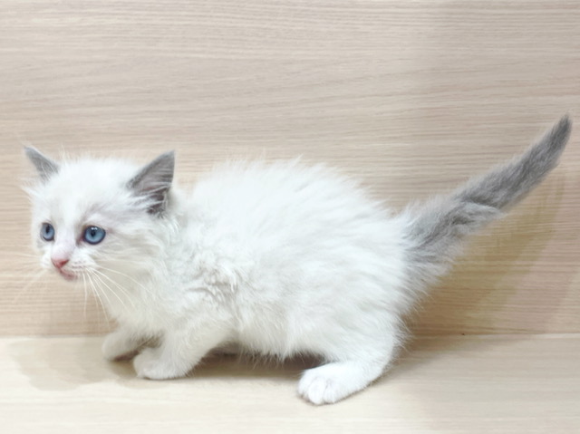 毛色は人気のブルーポイントバイカラーになり全体的に薄クリーム色の毛色をベースに