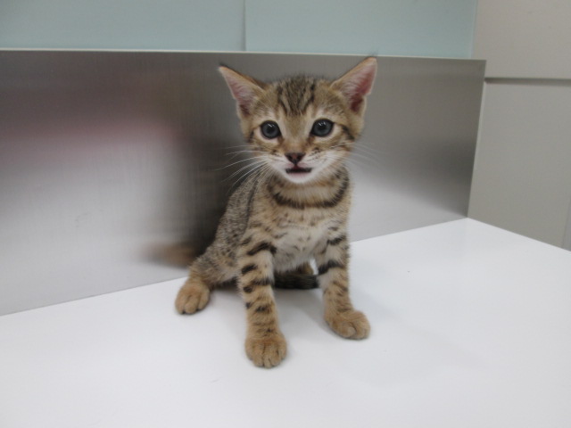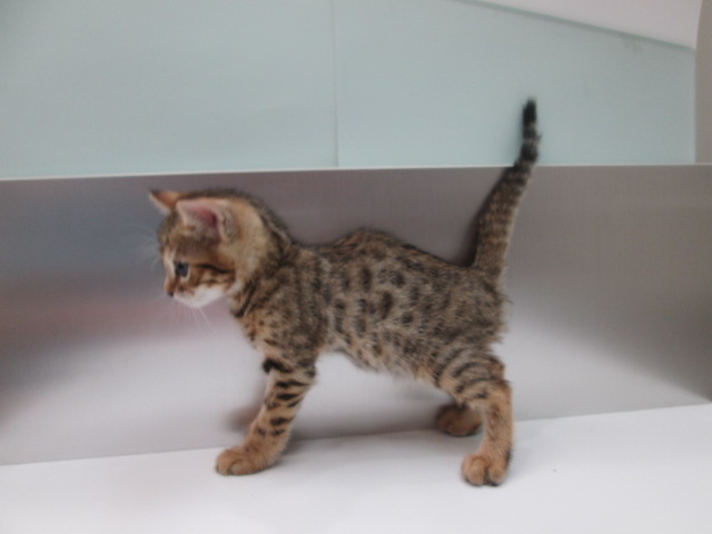 毛色は人気のブラウンスポテッドタビー色になりヒョウ柄のスポット柄が綺麗に入っております。