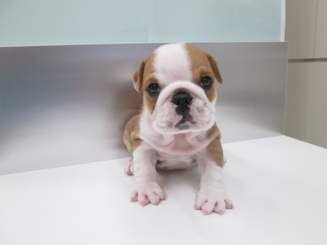 くりっとした大きな目にくちゃっとつぶれた肉つきの良いお顔が可愛い極上ブルドッグの女の子のご紹介です。