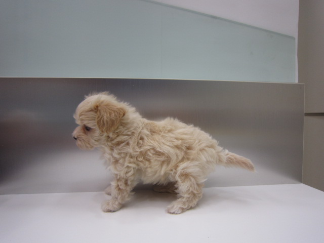 大人気!パパは極小サイズのティーカッププードル!!ママは可愛すぎマルチーズ!! 大人気の極小ミックスのマルプーの女の子です。 毛色はアプリコット色になりとっても綺麗です。 両親ともに小さいためこの子も将来は小さく可愛くまとまります。 性格はおっとりさんでマイペースな子です。 初めてワンちゃんを飼われるお客様にもぴったりの子です。 店頭にてワンちゃん抱っこ、見学出来ます。