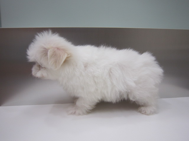 お顔立ちが優しく毛色がホワイトでモコモコな可愛いマルチーズの女の子です。お目目はまん丸で大きく、お鼻、体すべてにおいて詰まっていて全体的にコンパクトです。