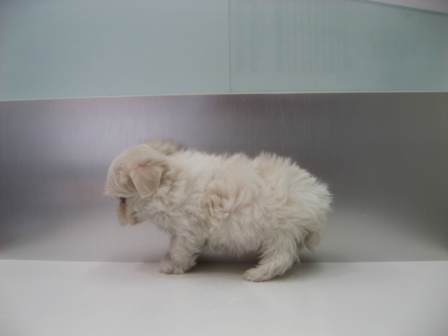 お顔立ちが優しく毛色がホワイトでモコモコな可愛いマルチーズの女の子です。