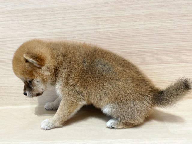 体型は柴犬の中でも小さいタイプの豆柴犬で全体的(お顔、手足、胴)が詰まっており