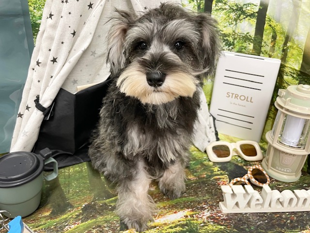 毛色は人気のソルト&ペッパー色になりシルバーグレーの毛色をベースに、